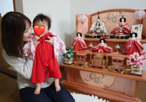 じいじが買ってくれたお雛様と一緒に写真を撮りました☆