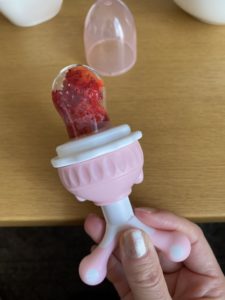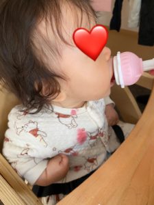 最初は不思議そうか顔をしていましたが、もぐもぐしたらいちごが出てくることに気が付き