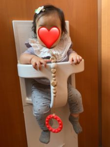 私一人で出かけることはほぼないので、お手洗いに行く際は主人に抱っこしてもらっていたのですが、座らせる機会がついに来ました!