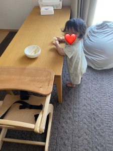 離乳食を準備していて、娘が届かないところにパンを置いたつもりだったのですが