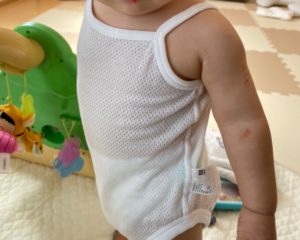 夜ご飯を食べ終わる頃には、服にごはん粒などがたくさんついているので