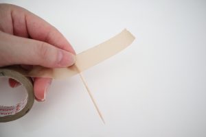 1.マスキングテープを使う分出し、爪楊枝の先端部分をくっつけます。