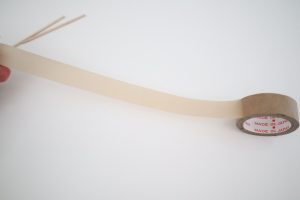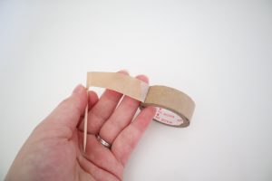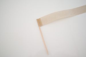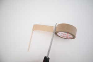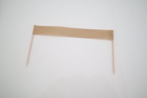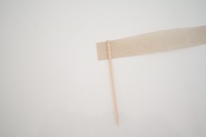 2.端に爪楊枝を乗せて、テープの粘着部分同士をくっつけます。