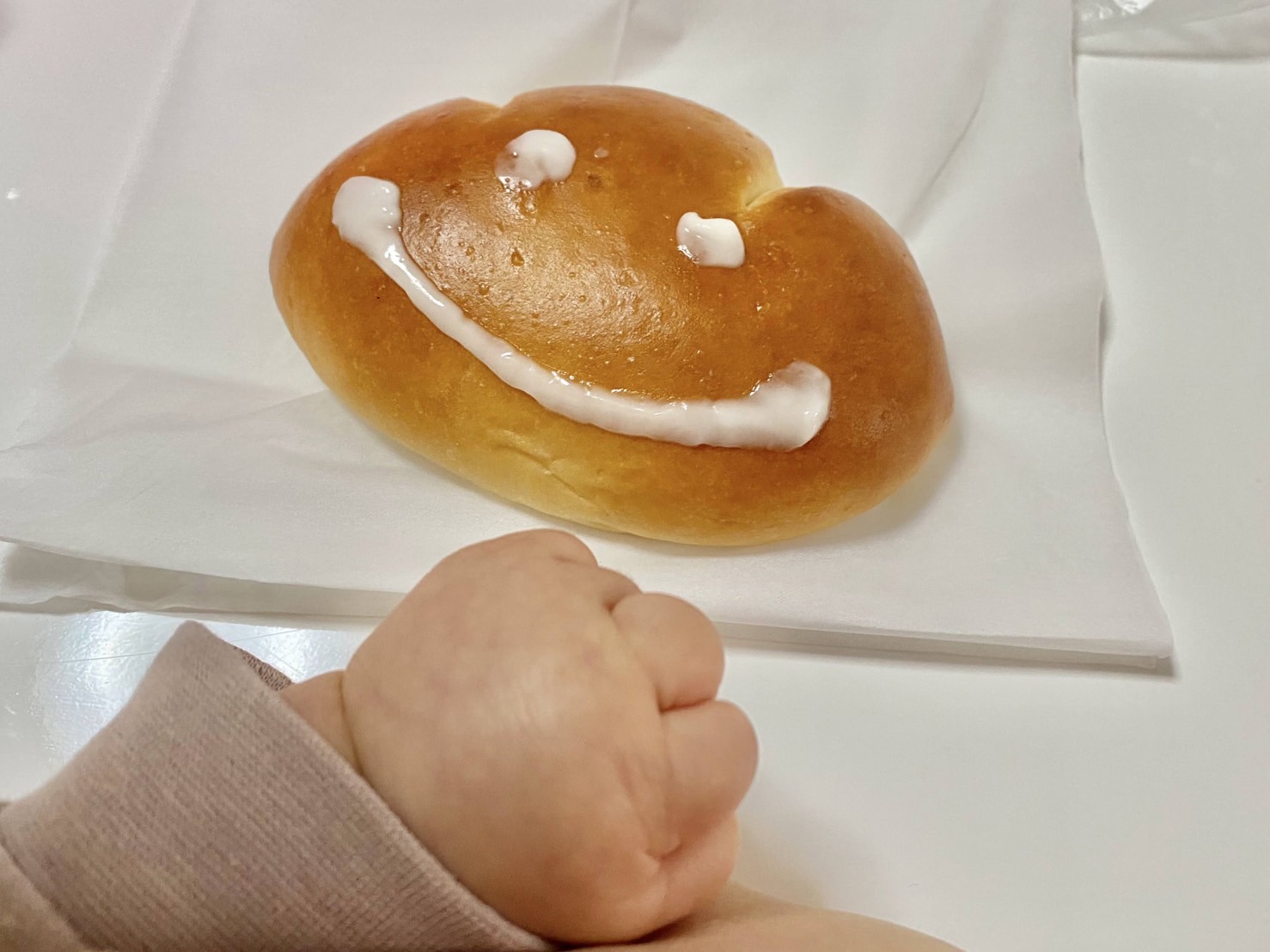 誰がクリームパンや・・・娘の成長記録TwitterFacebookはてブPocketLINEコピー2022.02.12ママがうちの手にクリームパン置いてきた。 誰がクリームパンそっくりじゃ😡(ぷんぷん)